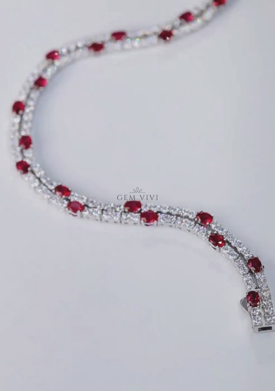 Baguette And Pear Ruby Link Bracelet