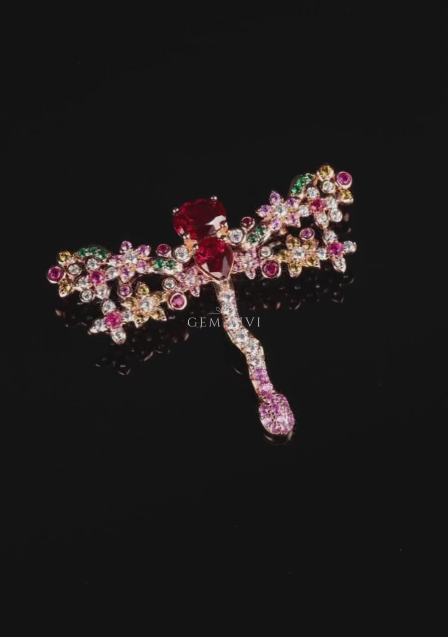 Ruby Dragonfly Blossom Brooch