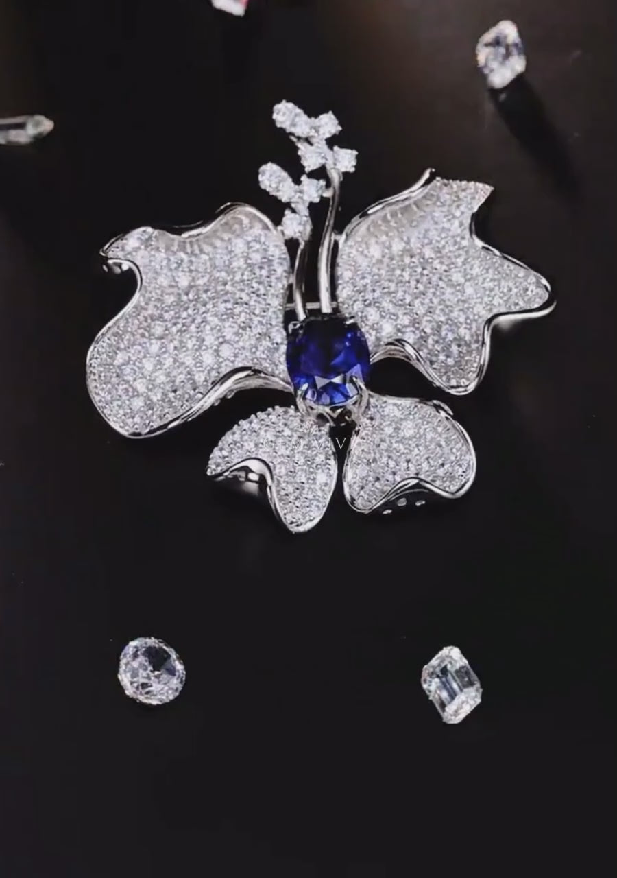 Butterfly Blue Sapphire Brooch