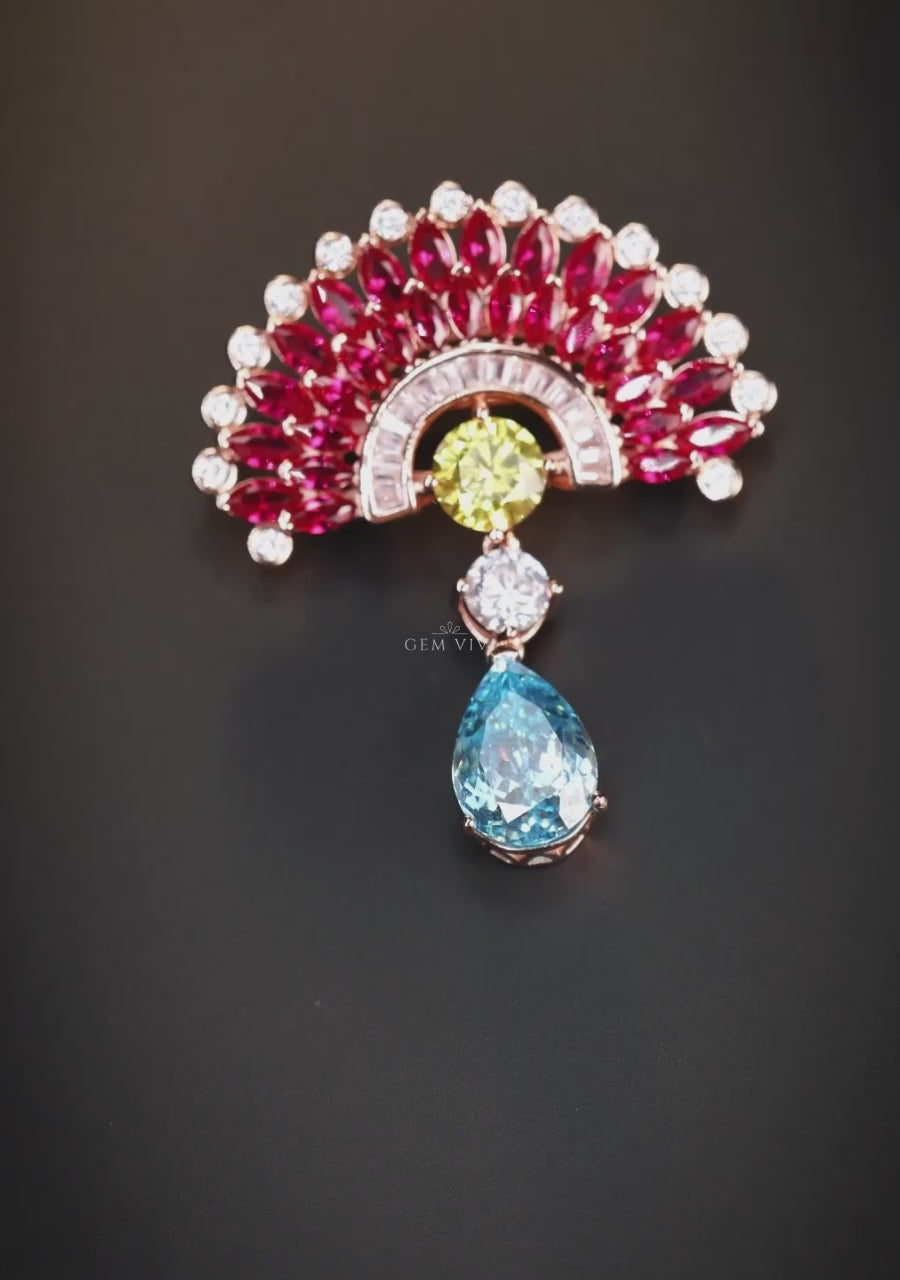 Carys Ruby Peacock Brooch