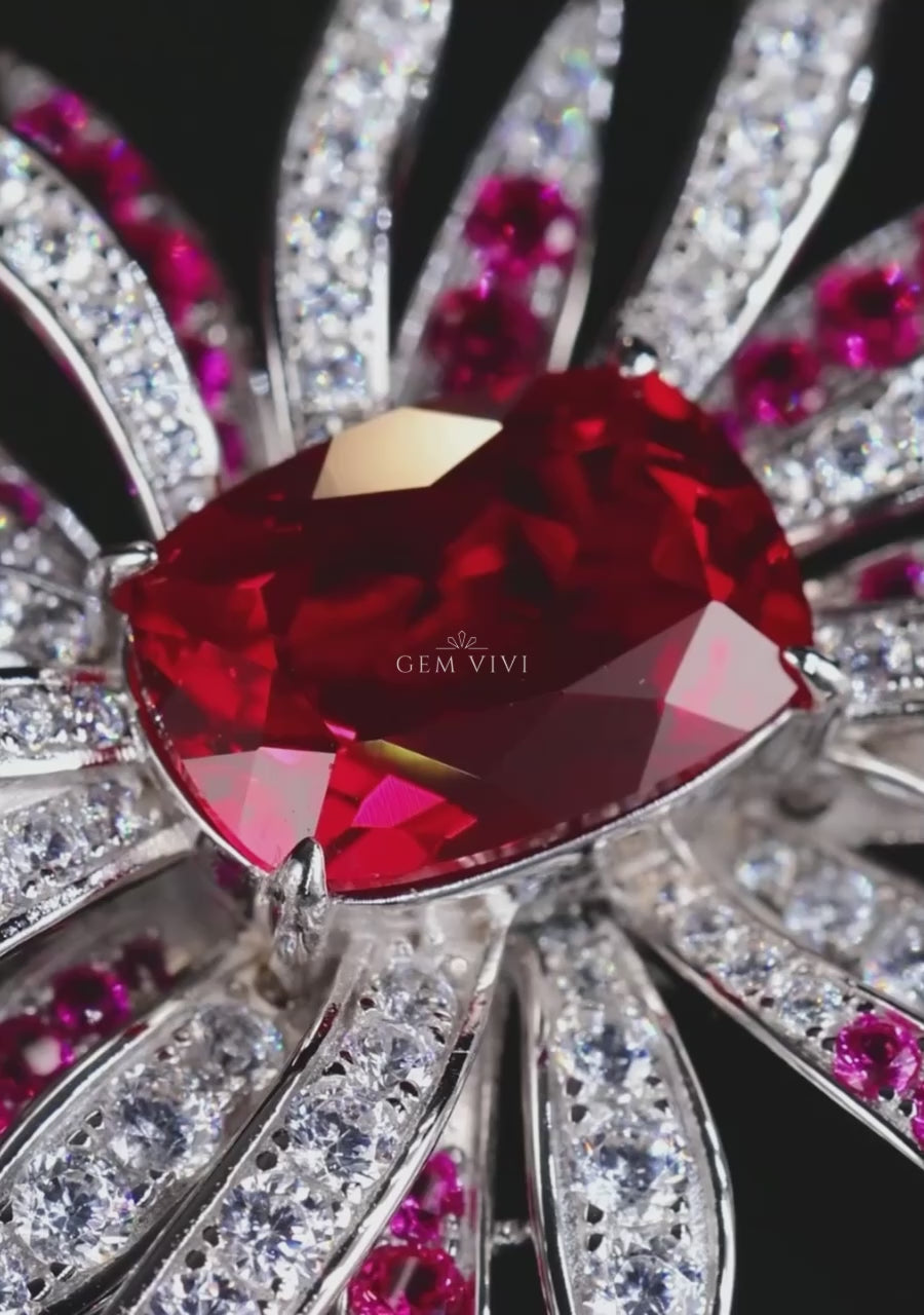 Ruby Fireworks Burst Brooch