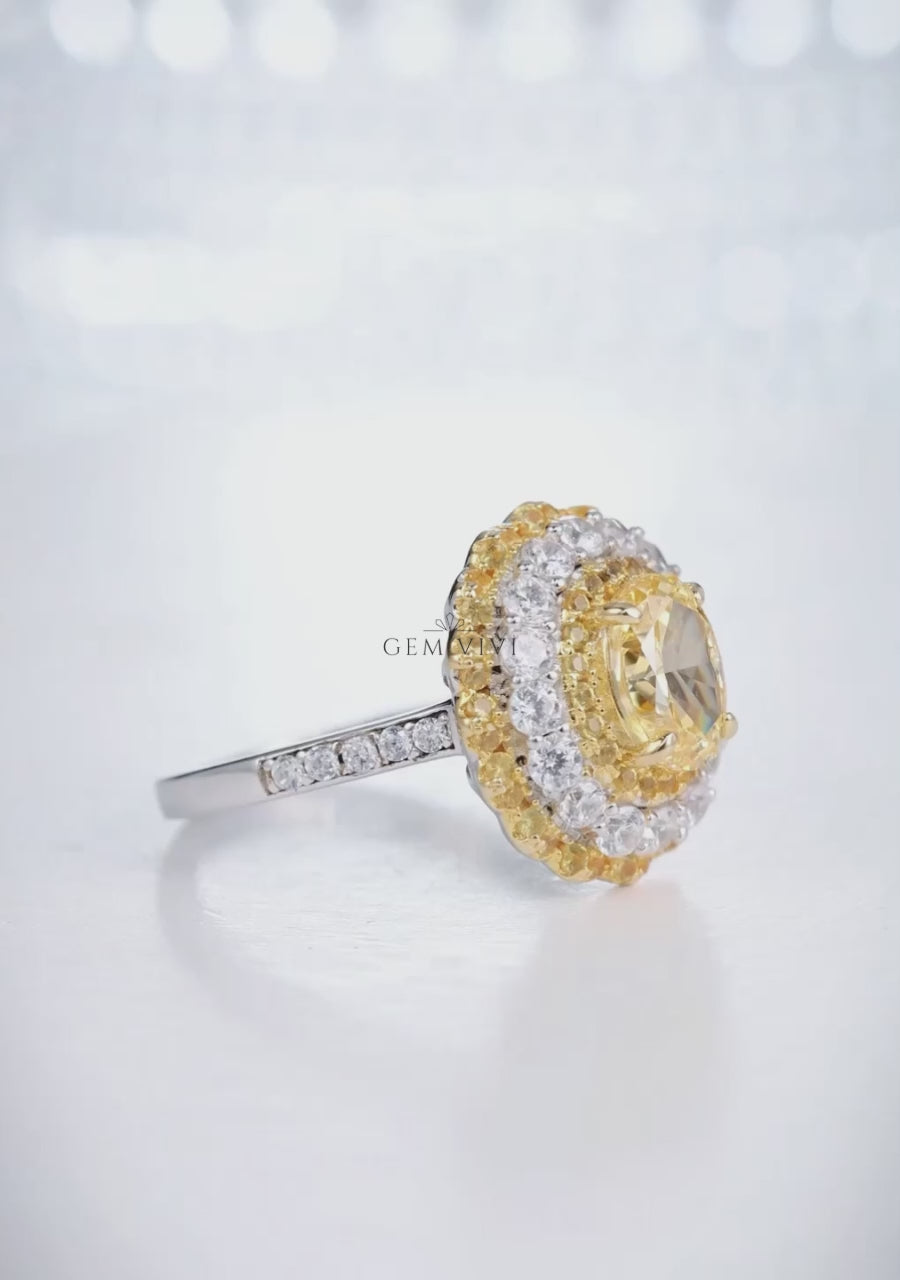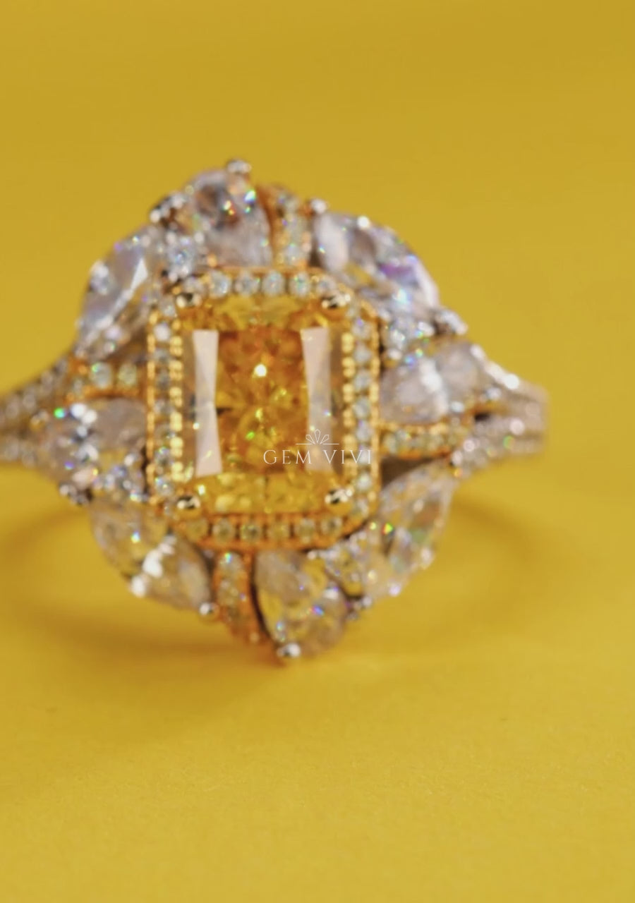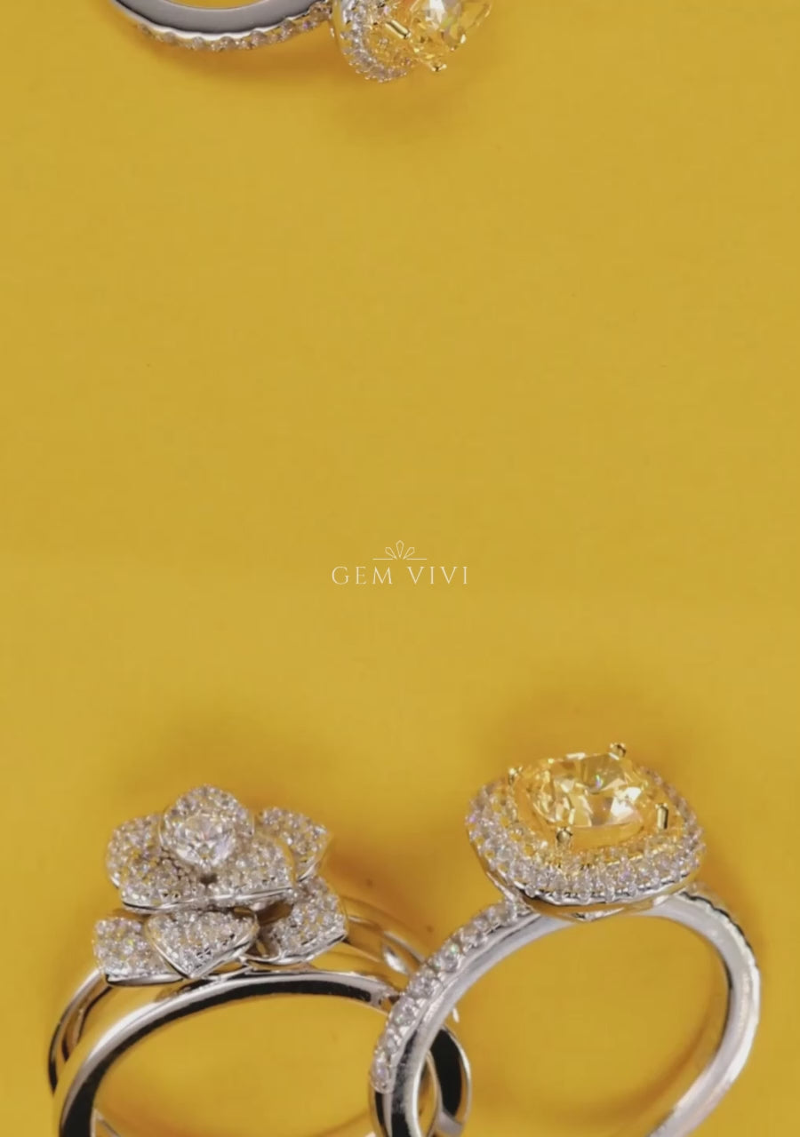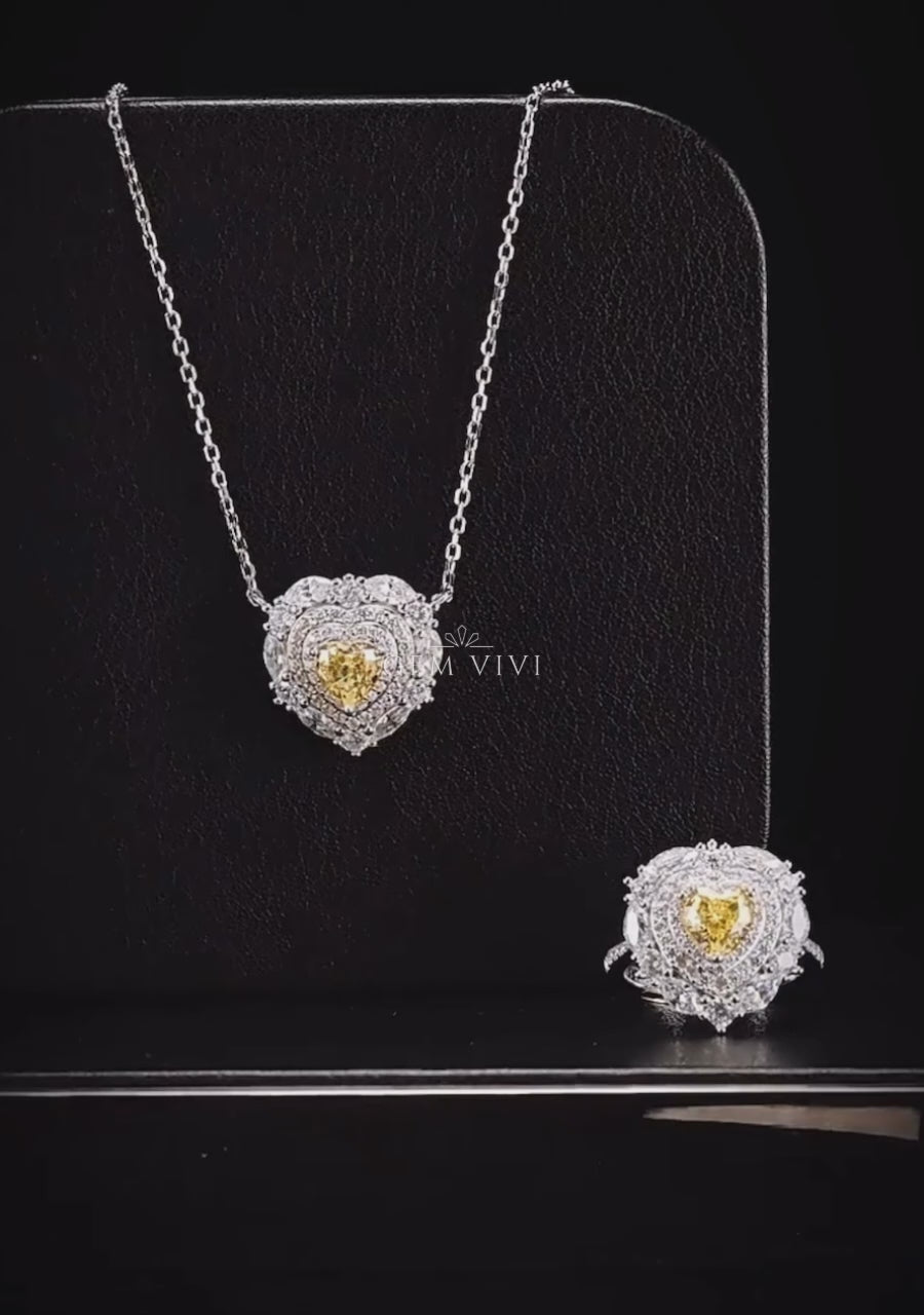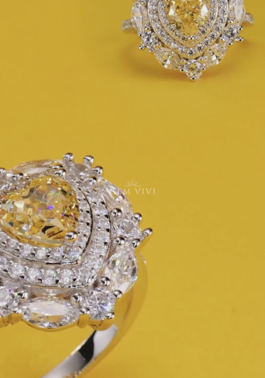 Heart Shaped Canary Halo Ring