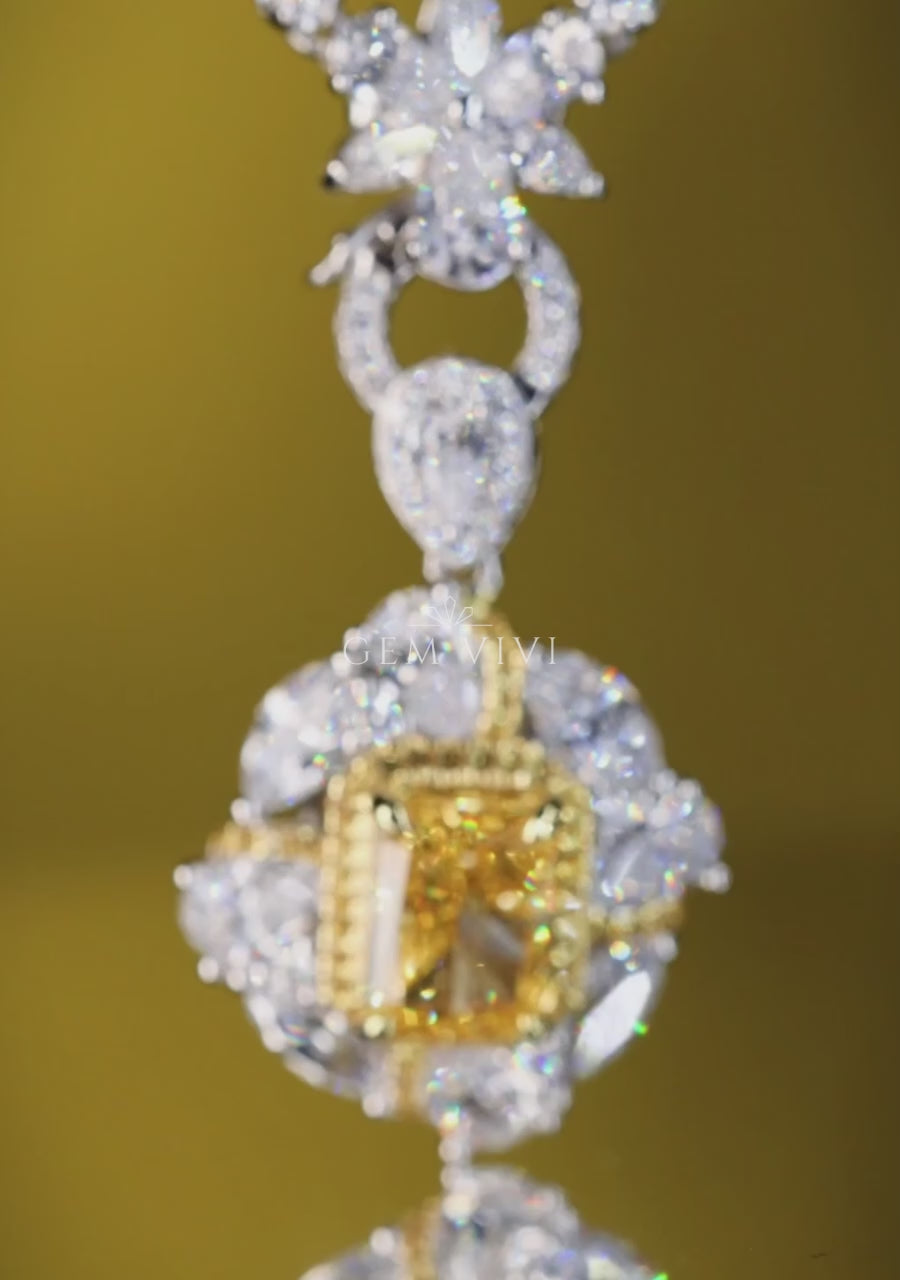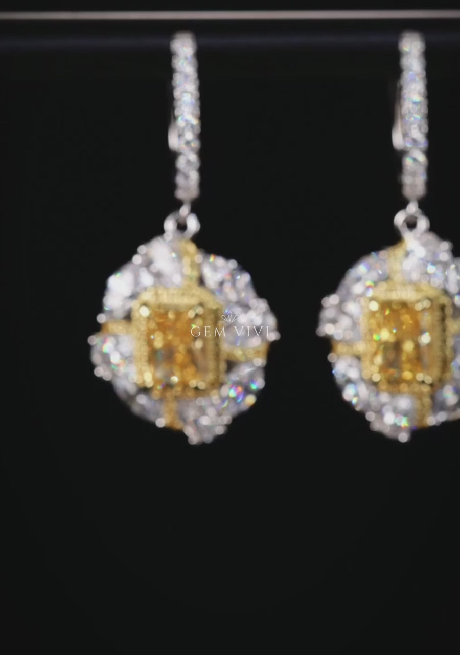 Canary Yellow Square Stone Dangle Earrings