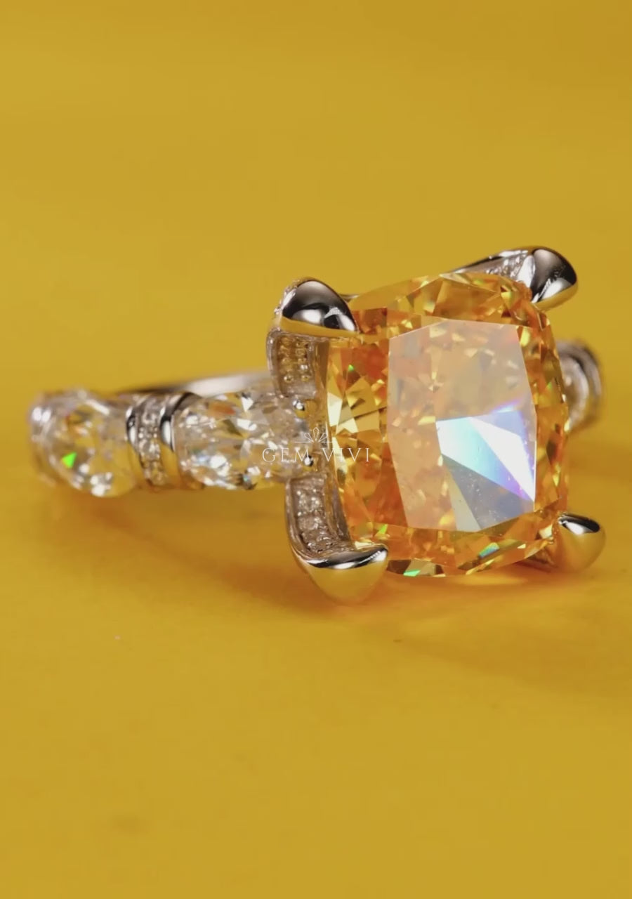 Canary Yellow Square Stone Ring