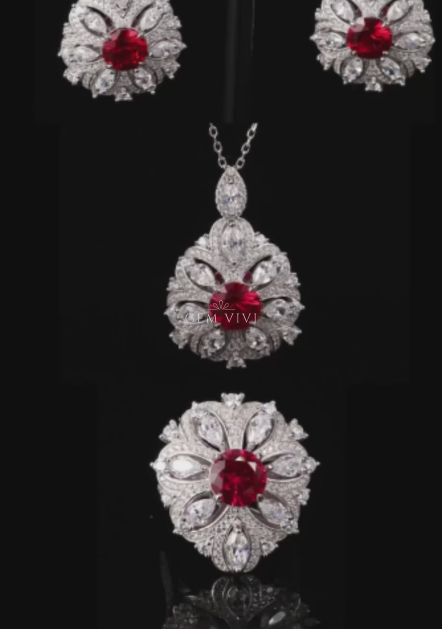 Regal Ruby Rosette Pendant Necklace