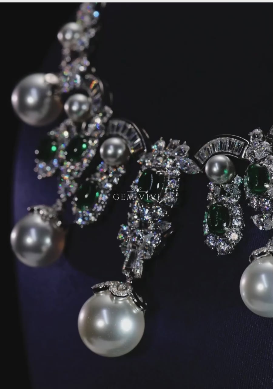 Calista Emerald & Pearl Drop Statement Necklace