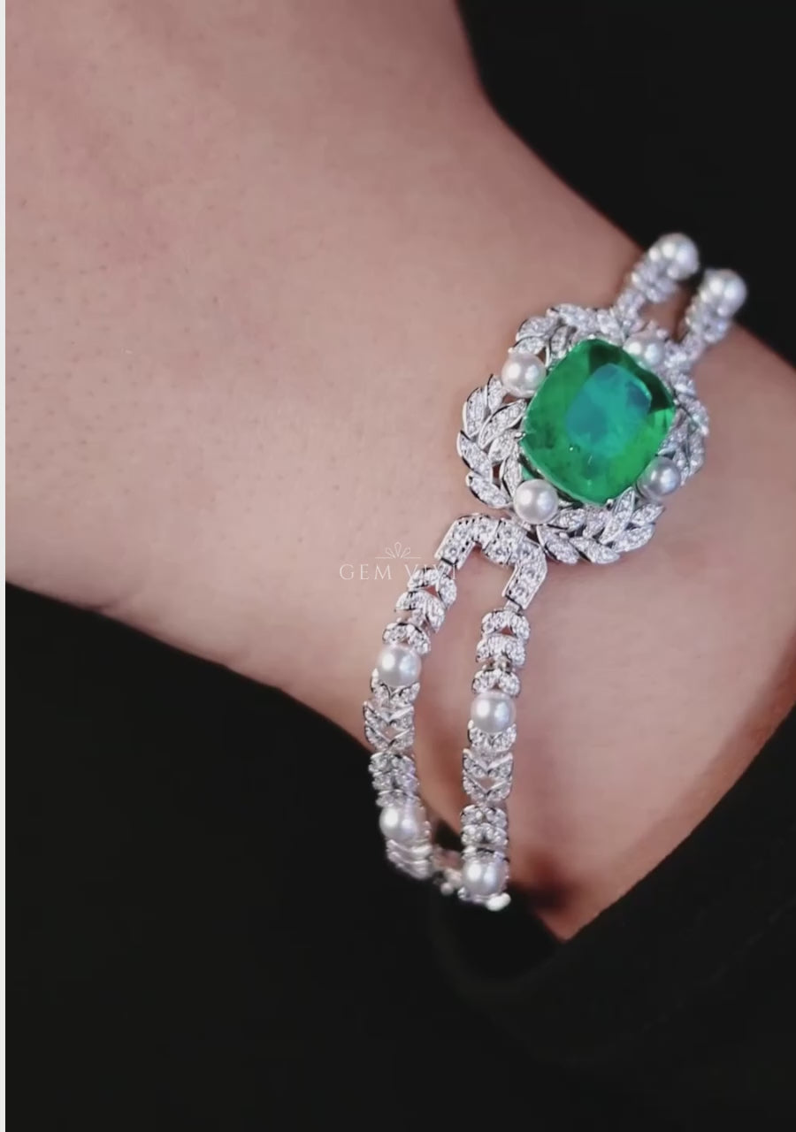 Verdant Emerald and Pearl Bracelet