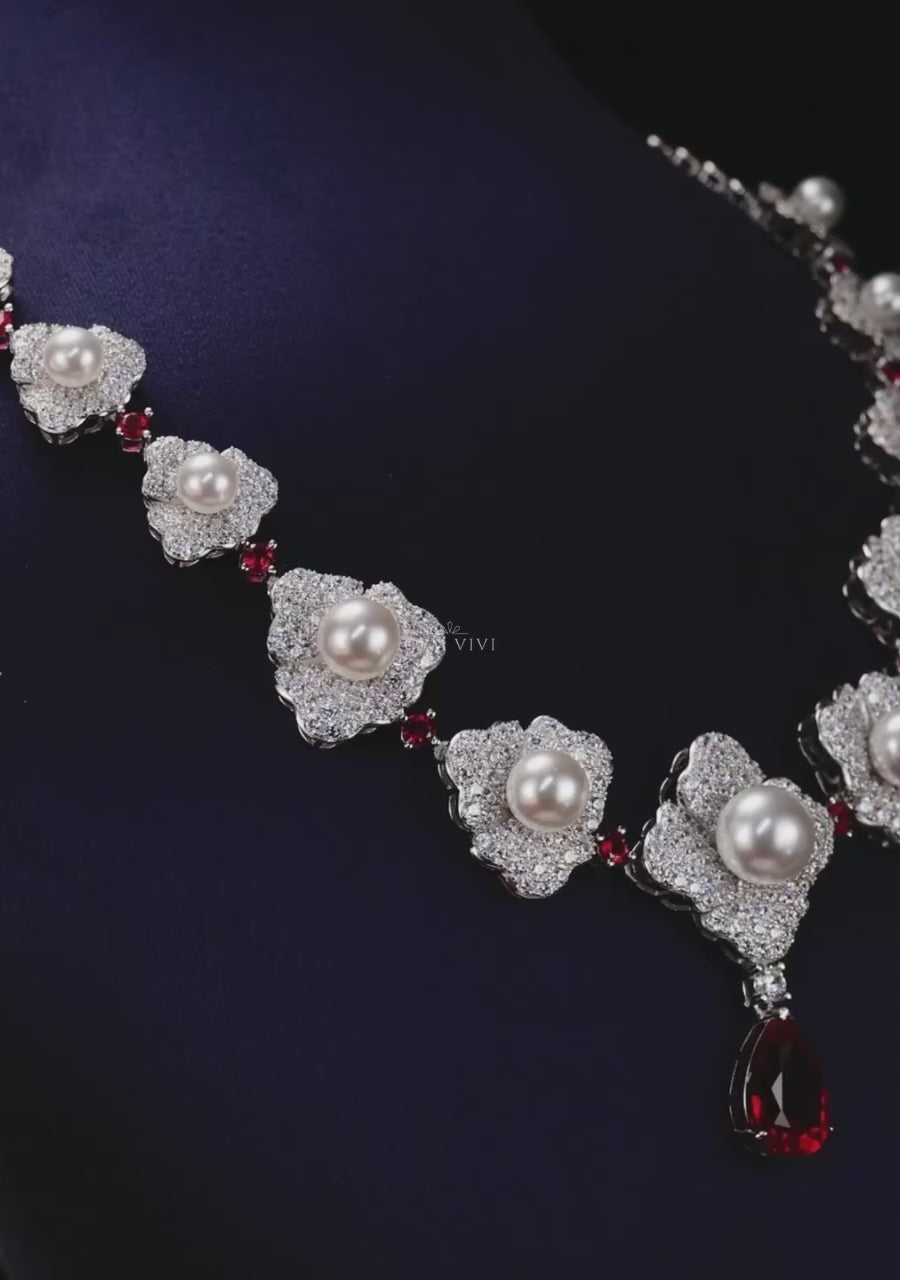 Cascade Pearl Rosette Statement Necklace