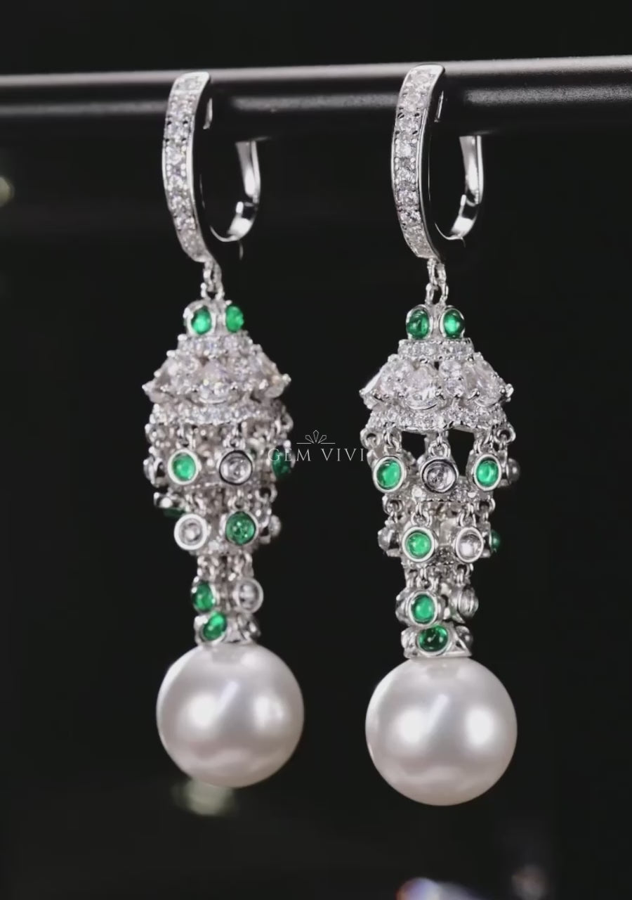 Elegant Pearl and Emerald Tassel Earrings