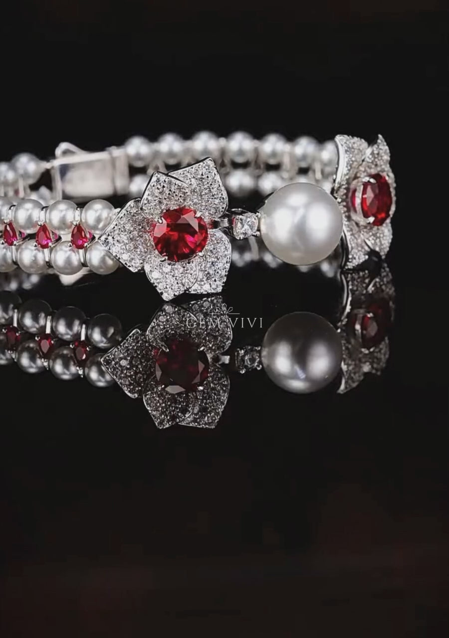 Cascade Pearl Rosette Ruby Bracelet