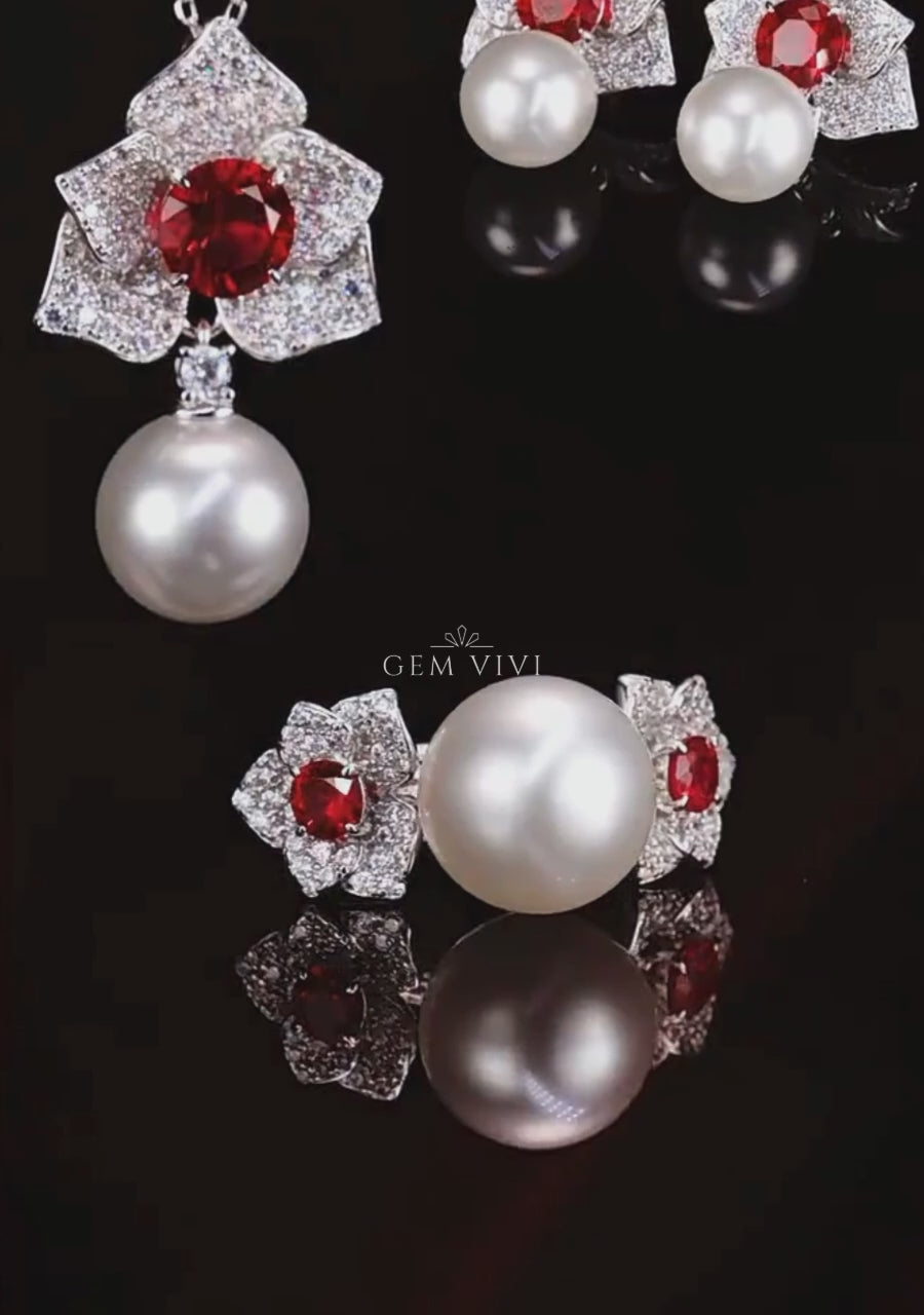 Cascade Pearl Rosette Ruby Earring