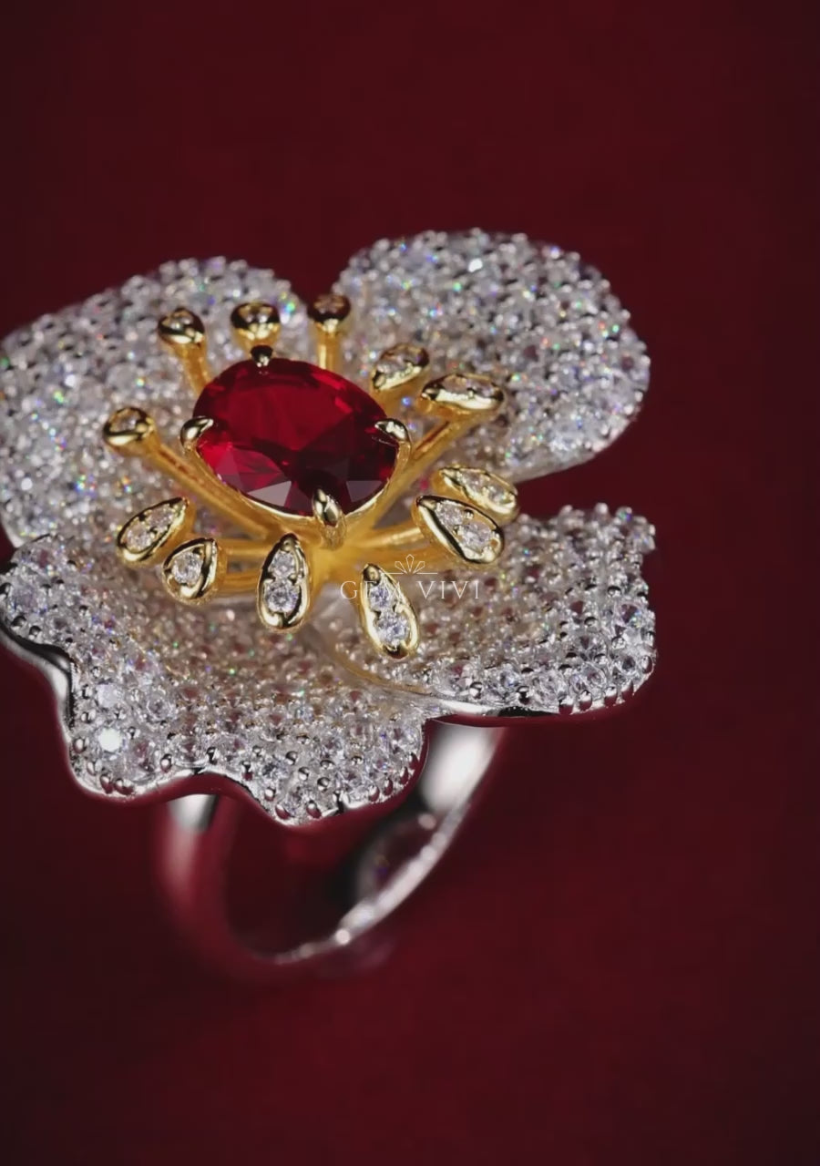 Claire Flower Cocktail Ruby Ring
