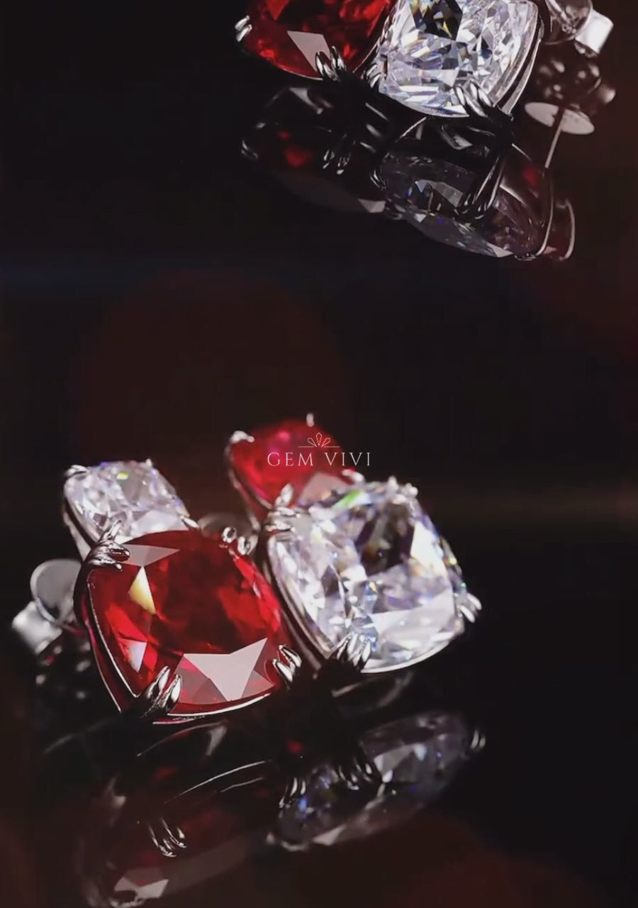 Red Ruby Duo Stud Earrings