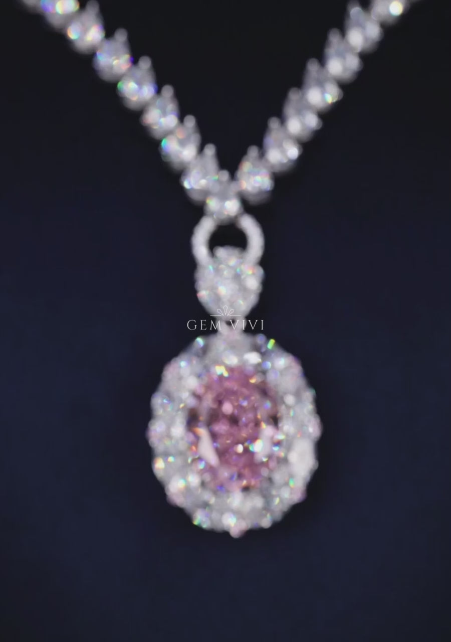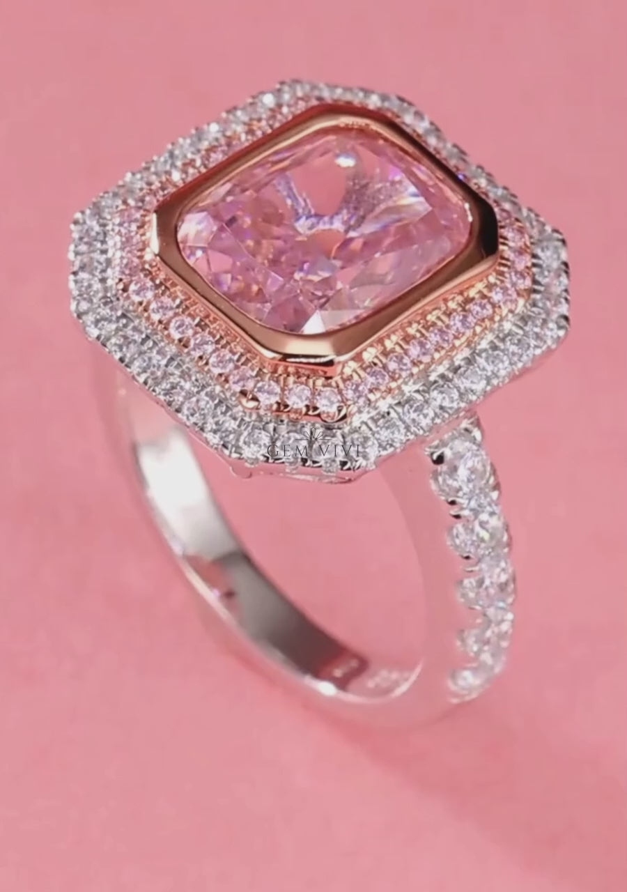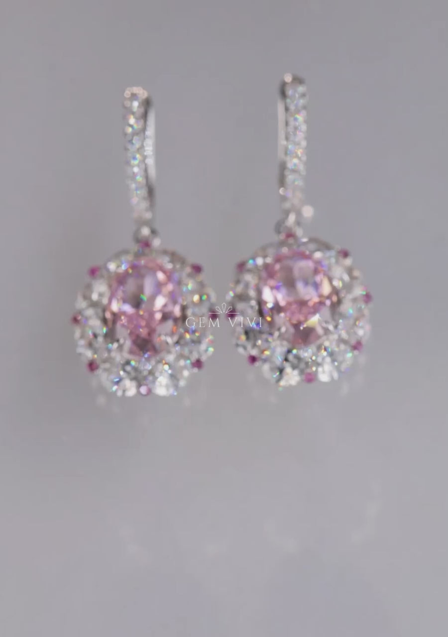 Rosé Allure Sakura Pink Oval Halo Dangle Earrings