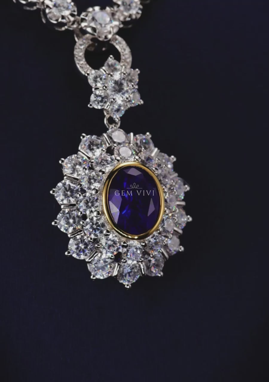 Royal Sapphire Halo Drop Necklace
