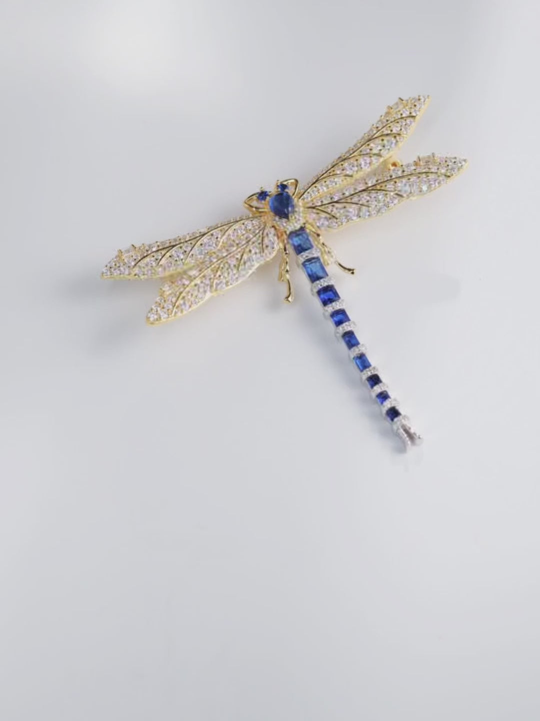 Graceful and eye-catching, the Sapphire Dragonfly Brooch features shimmering blue stones and white stone adorned wings that capture light beautifully. Designed to add a touch of elegance and charm, it makes the perfect statement accessory for any outfit.