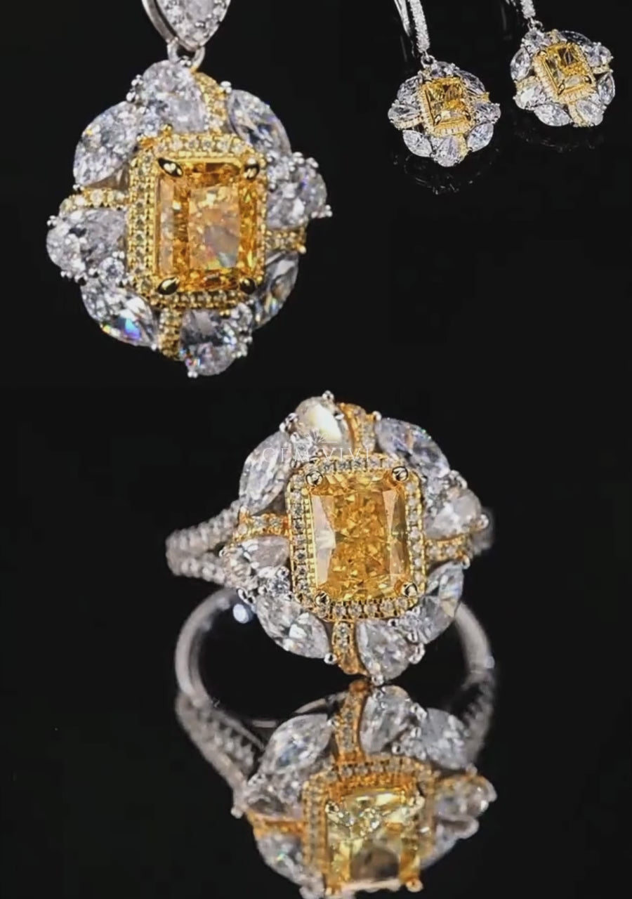 - Main Stone: Emerald Cut Vivi Gem in Canary Yellow