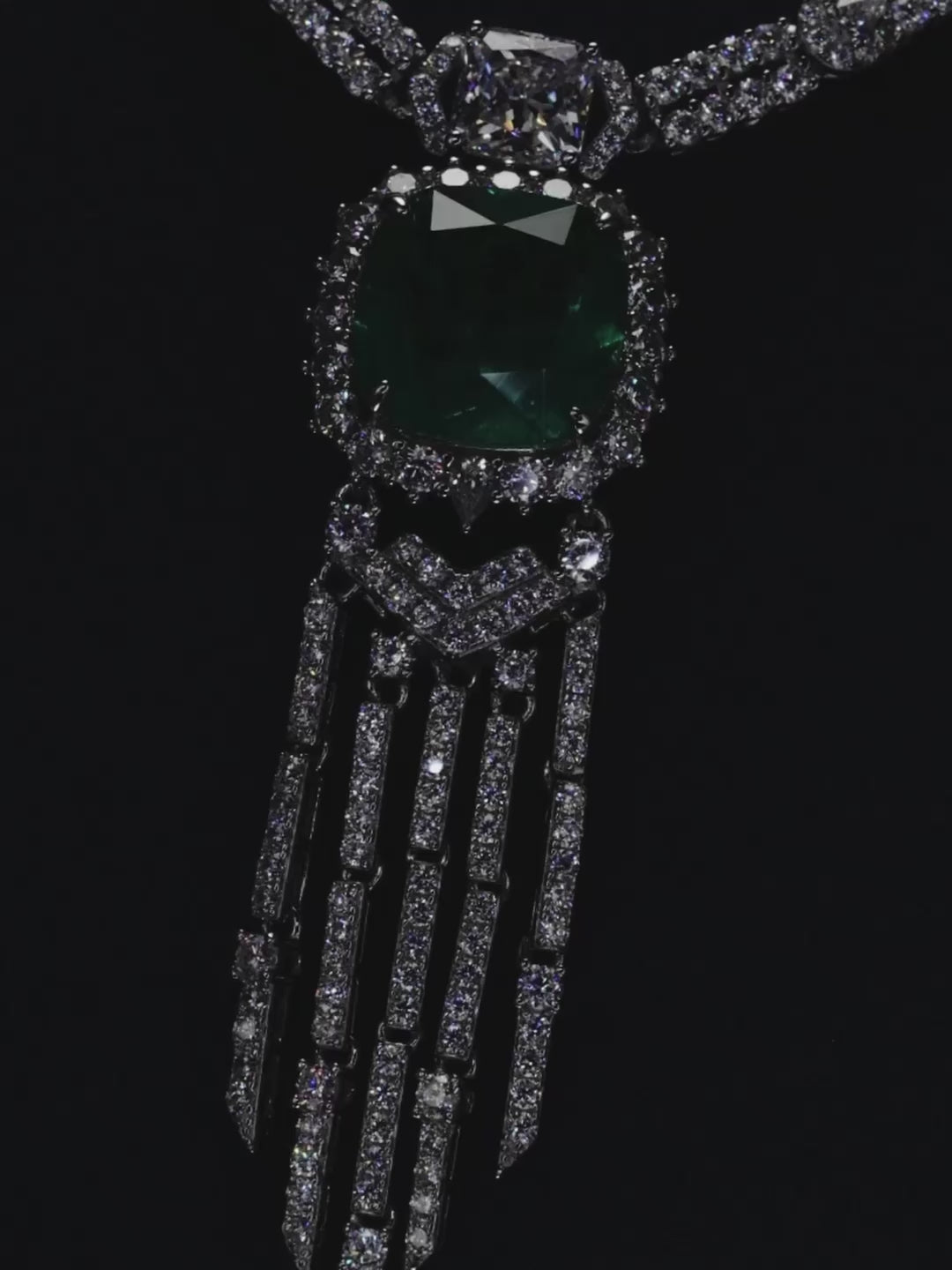 Make a bold entrance with this show-stopping necklace, featuring a vivid cushion-cut green stone encircled by brilliant white accents. its elegant tassel design adds graceful movement and radiant sparkle, perfect for special occasions or elevating any evening look.