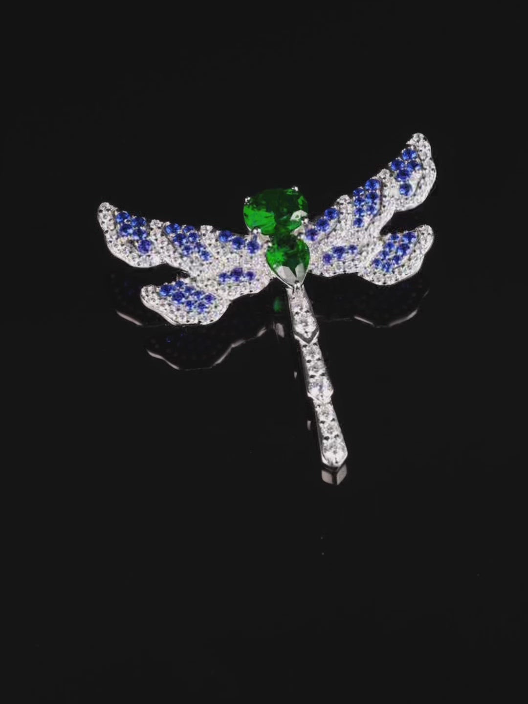 This dragonfly pendant symbolizes transformation and elegance, featuring emerald-green and sapphire-blue stones set in sparkling 18k white gold-plated silver wings. Whimsical yet bold, it brings vibrant charm and dazzling sparkle to both everyday wear and evening style.