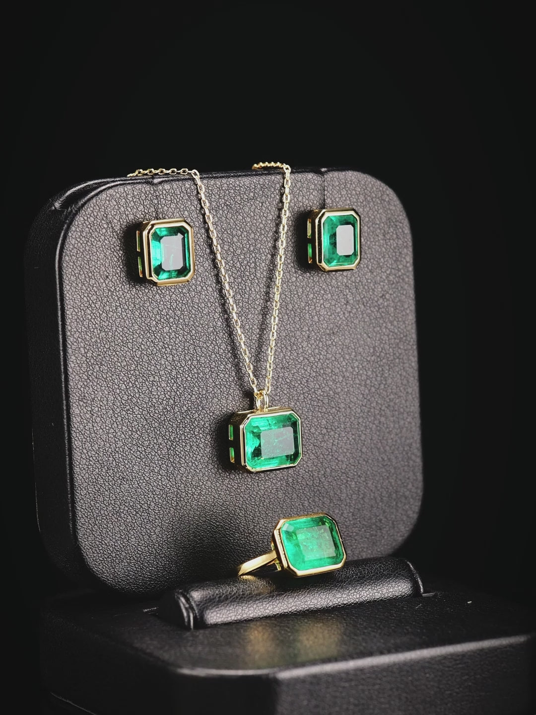 Make a bold yet refined statement with this emerald, green cube pendant necklace, designed for modern versatility. Pair it with matching earrings or rings for a coordinated look or wear it solo for effortless style from day to night.
