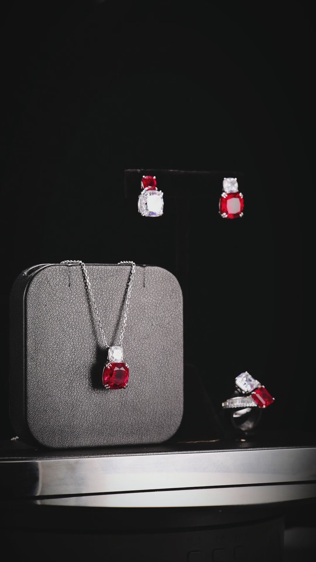 A bold reinterpretation of classic studs, these earrings pair rubies with sparkling stones in an elegant two-stone design.