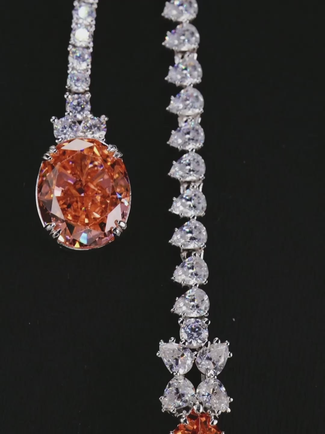 This Necklace dazzles with a vibrant mix of orange and icy white stones. Crafted in 18k white gold-plated silver, its sculptural silhouette and radiant sparkle make it perfect for striking, statement-making style.