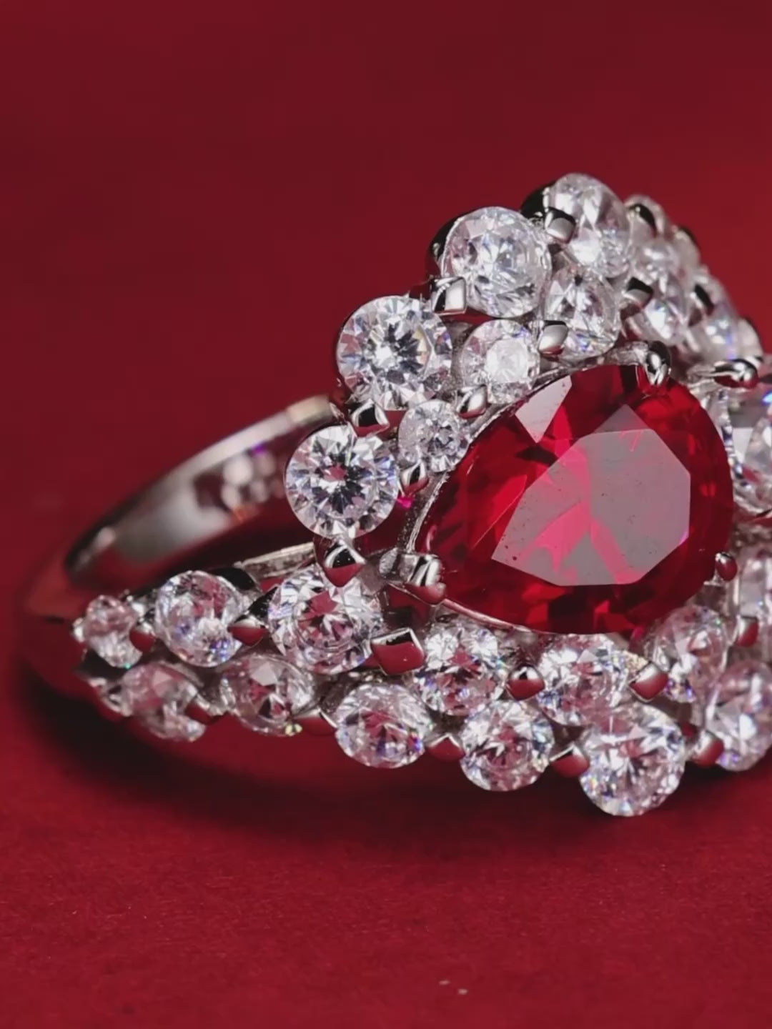 A radiant pear-cut lab-created ruby captures the light with bold crimson brilliance, creating a true statement piece. Elegant and versatile, this ruby ring adds timeless sophistication to both everyday style and special occasions.