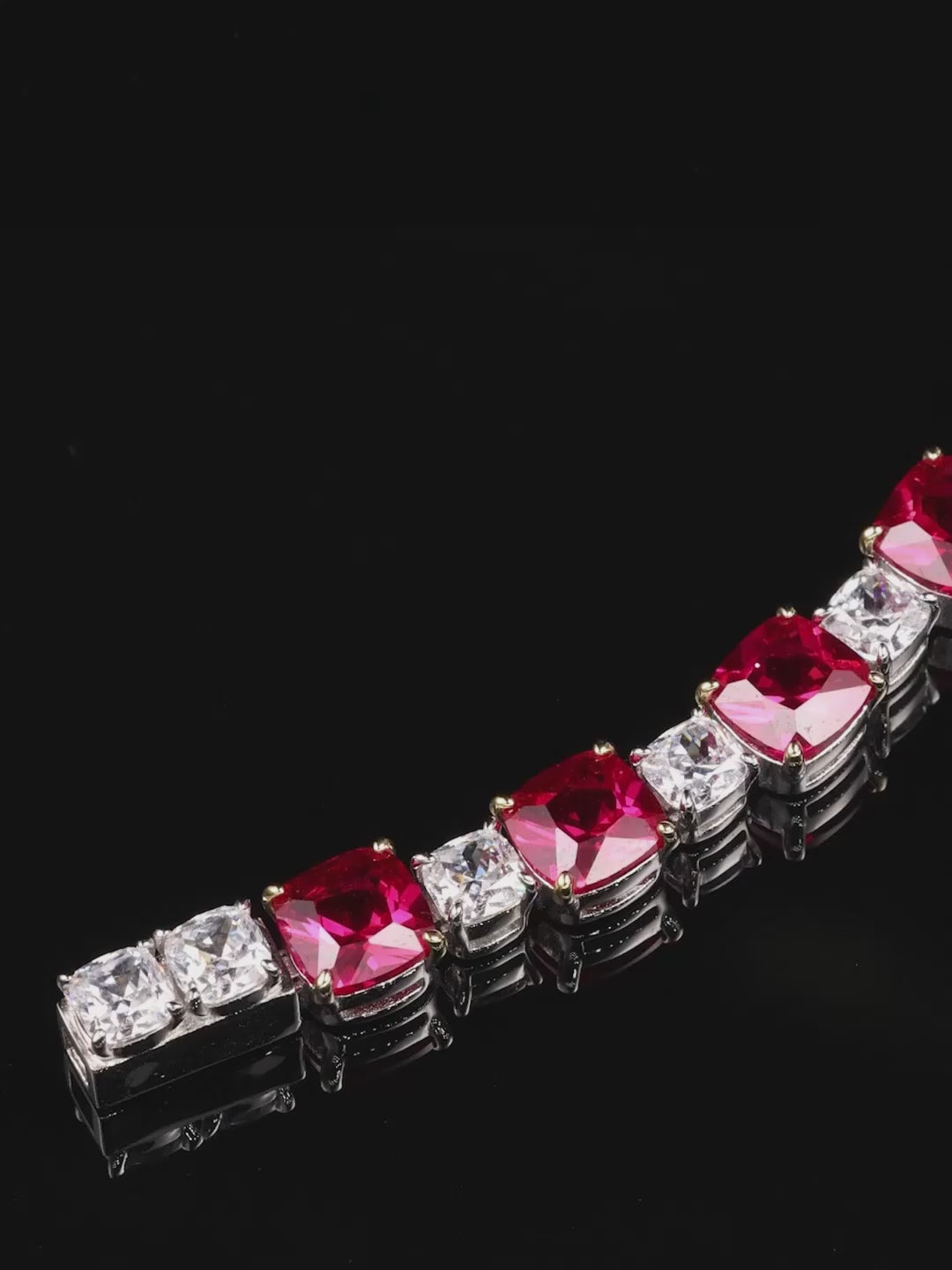 This classic tennis necklace pairs vivid cushion-cut ruby with sparkling white accents in a seamless, elegant design.