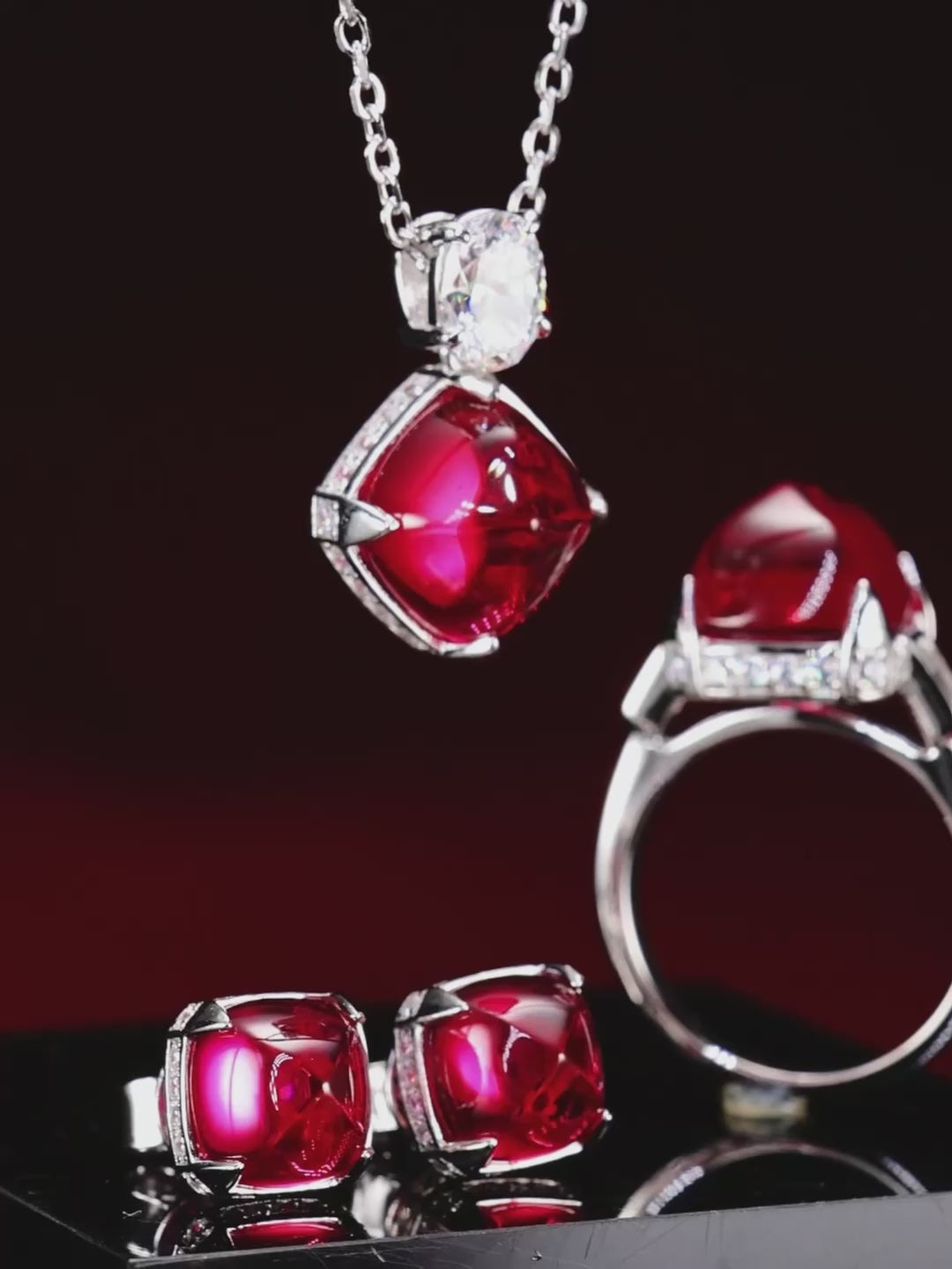 - Main Stone: Sugar-loaf Cut Red Ruby