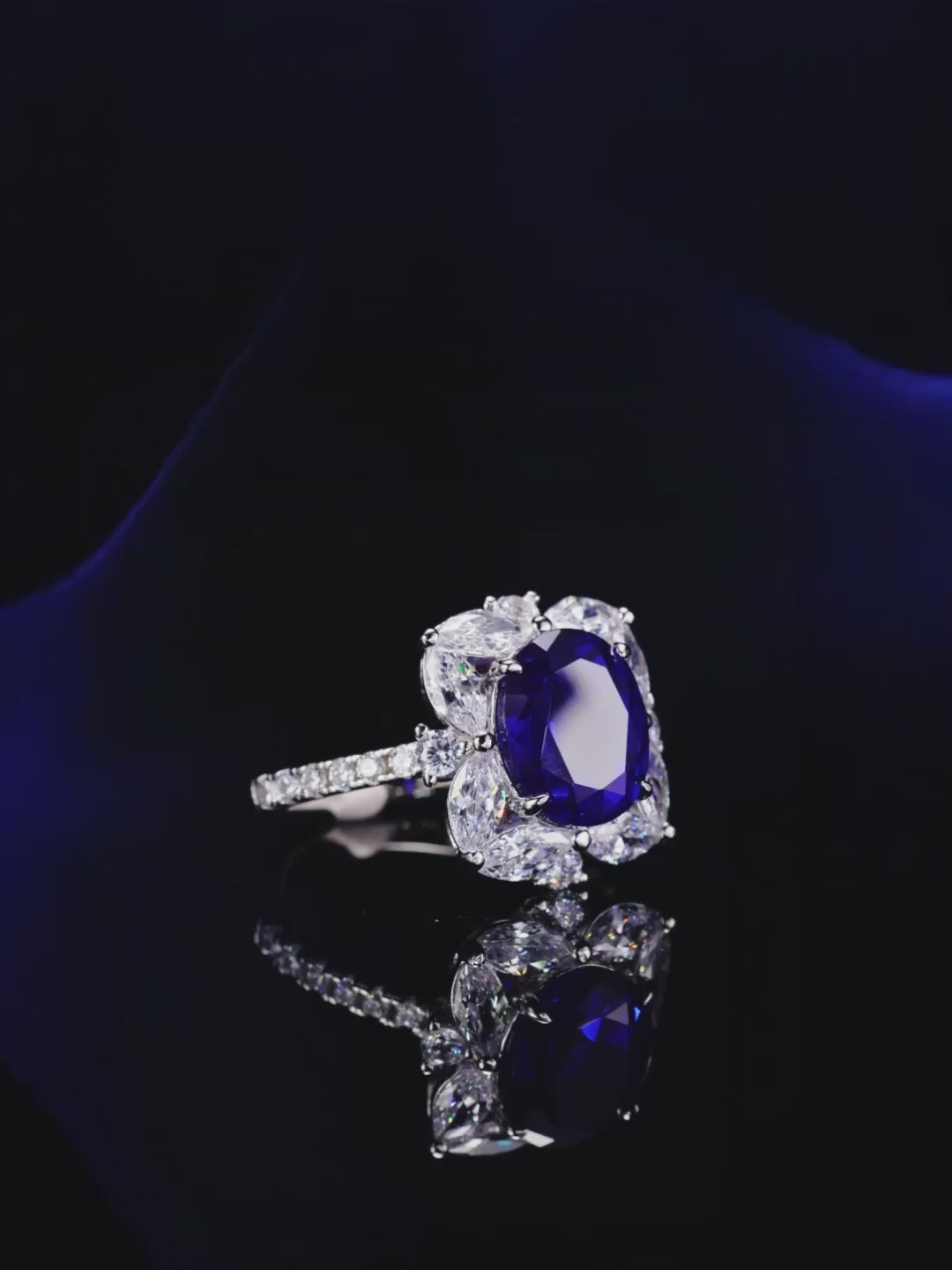 These oval blue sapphire stud earrings are framed by a radiant halo of marquise and round white stones. With their floral-inspired design and timeless elegance, they’re the perfect staple for elevating any look, day or night.
