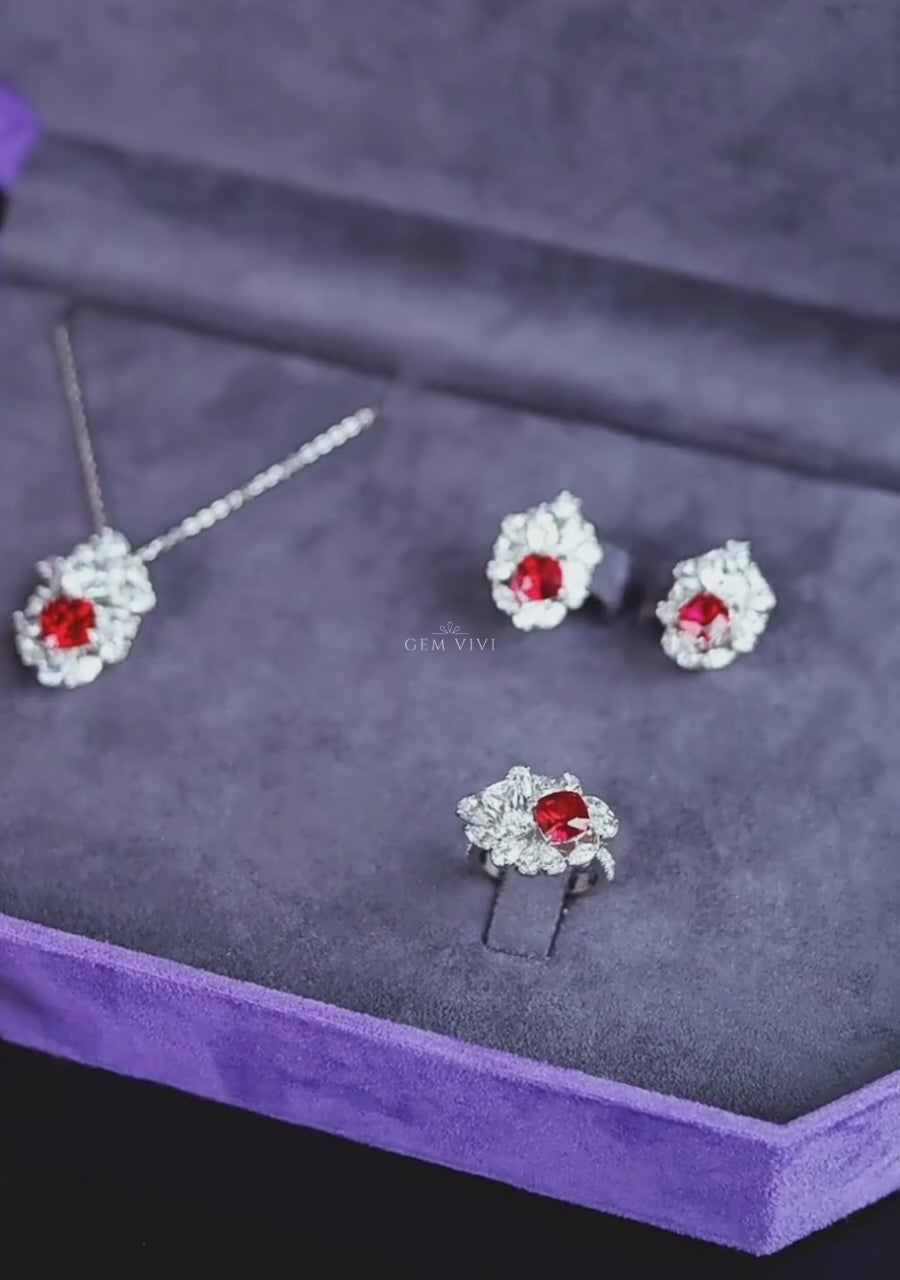 - Main Stone: Cushion Cut Ruby