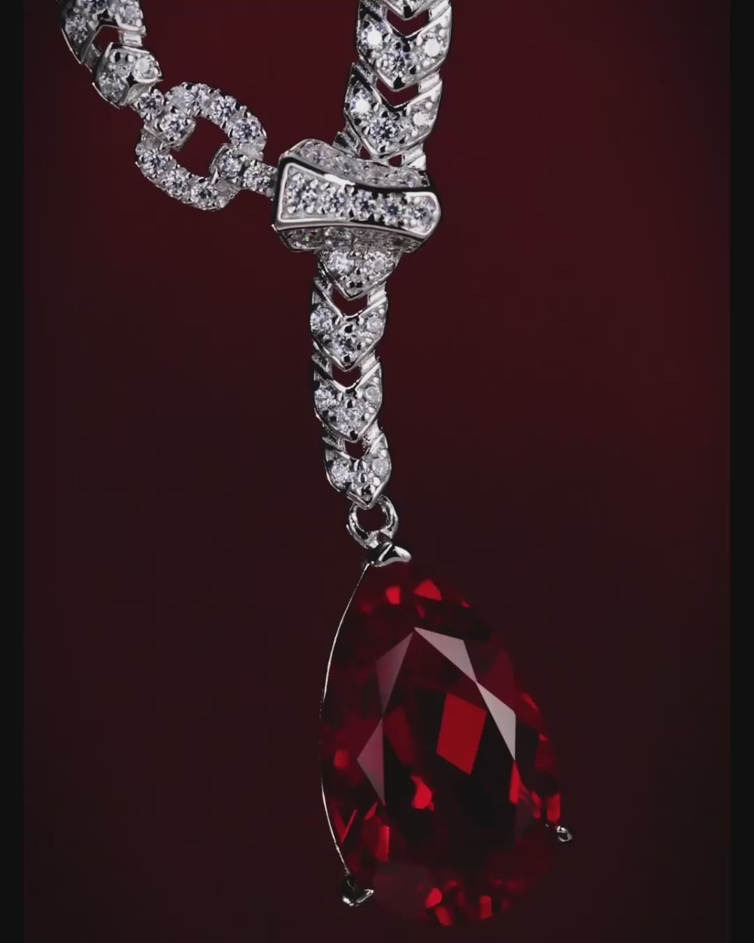 These pear-shaped ruby drop earrings captivate with deep red stones accented by baguette, round, and teardrop details. Radiating luxury and timeless beauty, they bring bold elegance to both special occasions and polished daytime looks.
