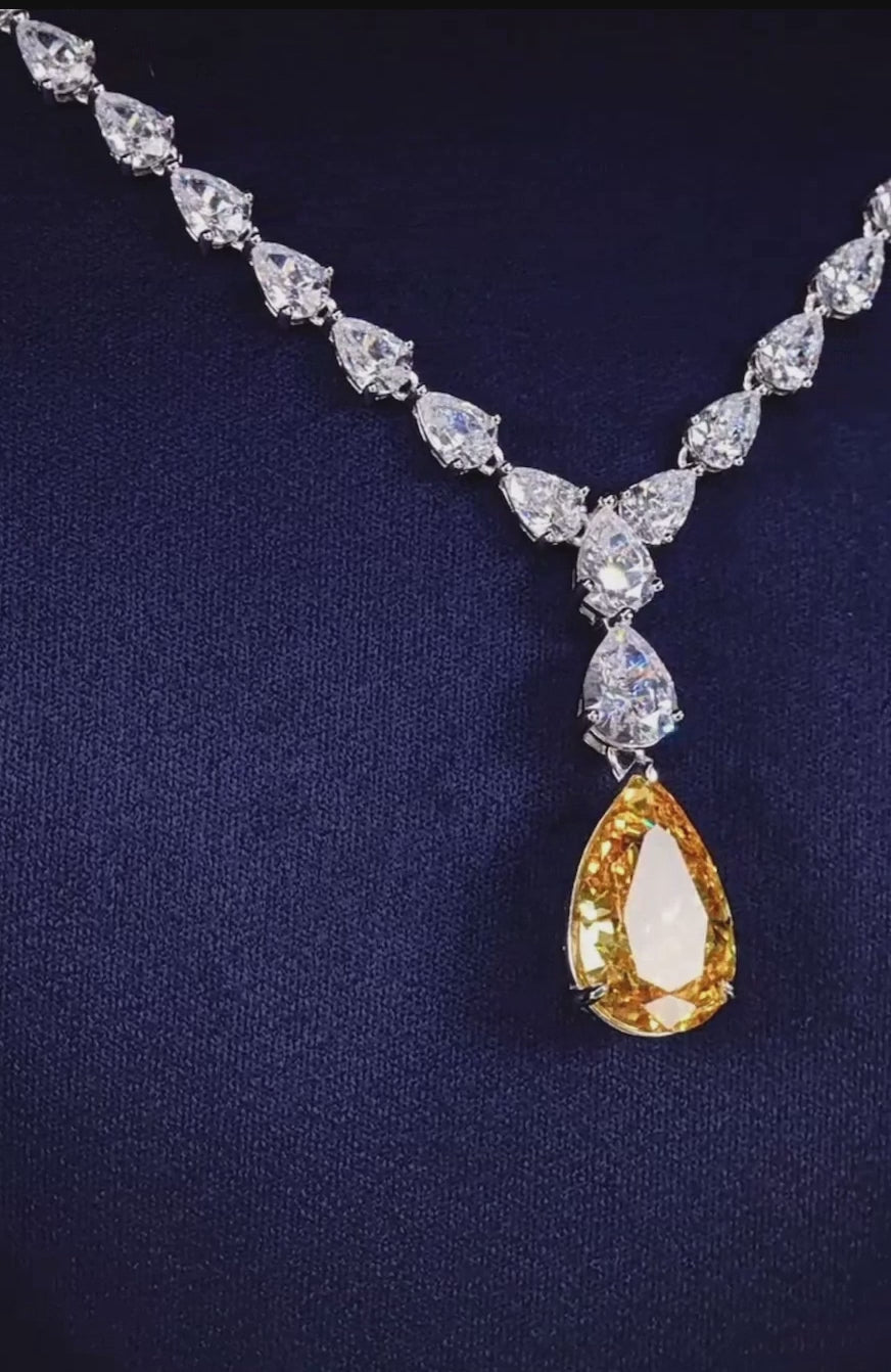 Brighten any look with this canary yellow gemstone necklace, accented by sparkling white stones in an elegant sleek setting. Its radiant drop design brings sunshine-inspired luxury.